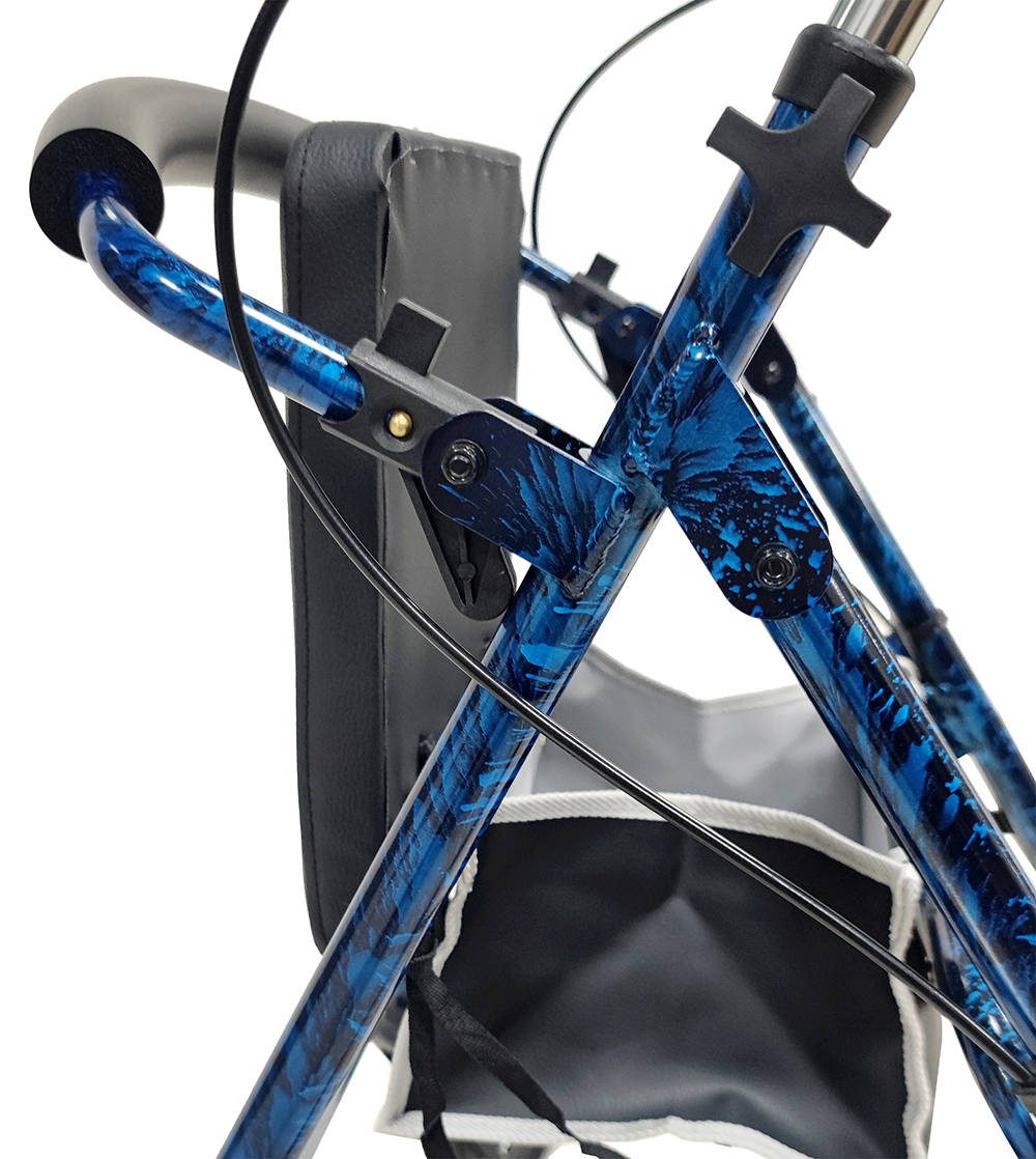 M1 frames are made of aluminum with a powder-coated finish surface. This lightweight rollator is foldable for easy storage and has adjustable handles to suit the user’s height. Each rollator also includes a comfortable padded seat and a handy shopping bag.